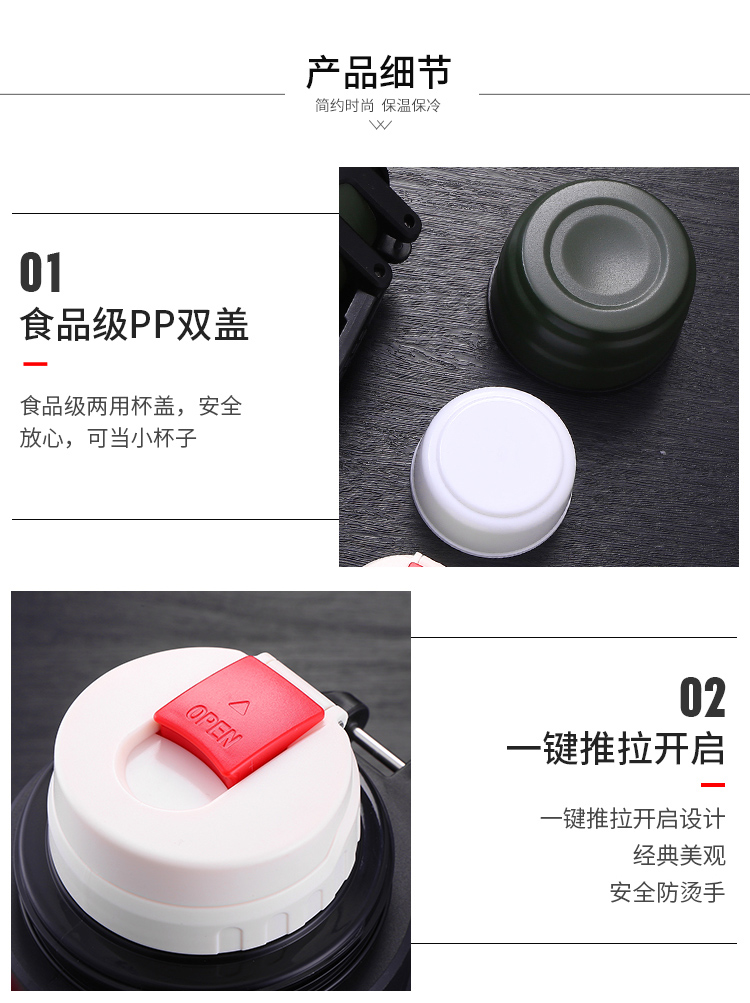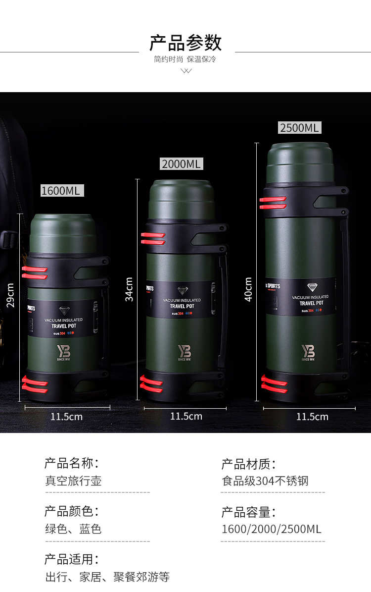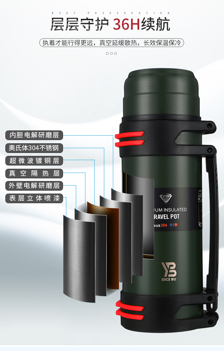 御宝不锈钢真空旅行壶 805 2500ml 军绿色